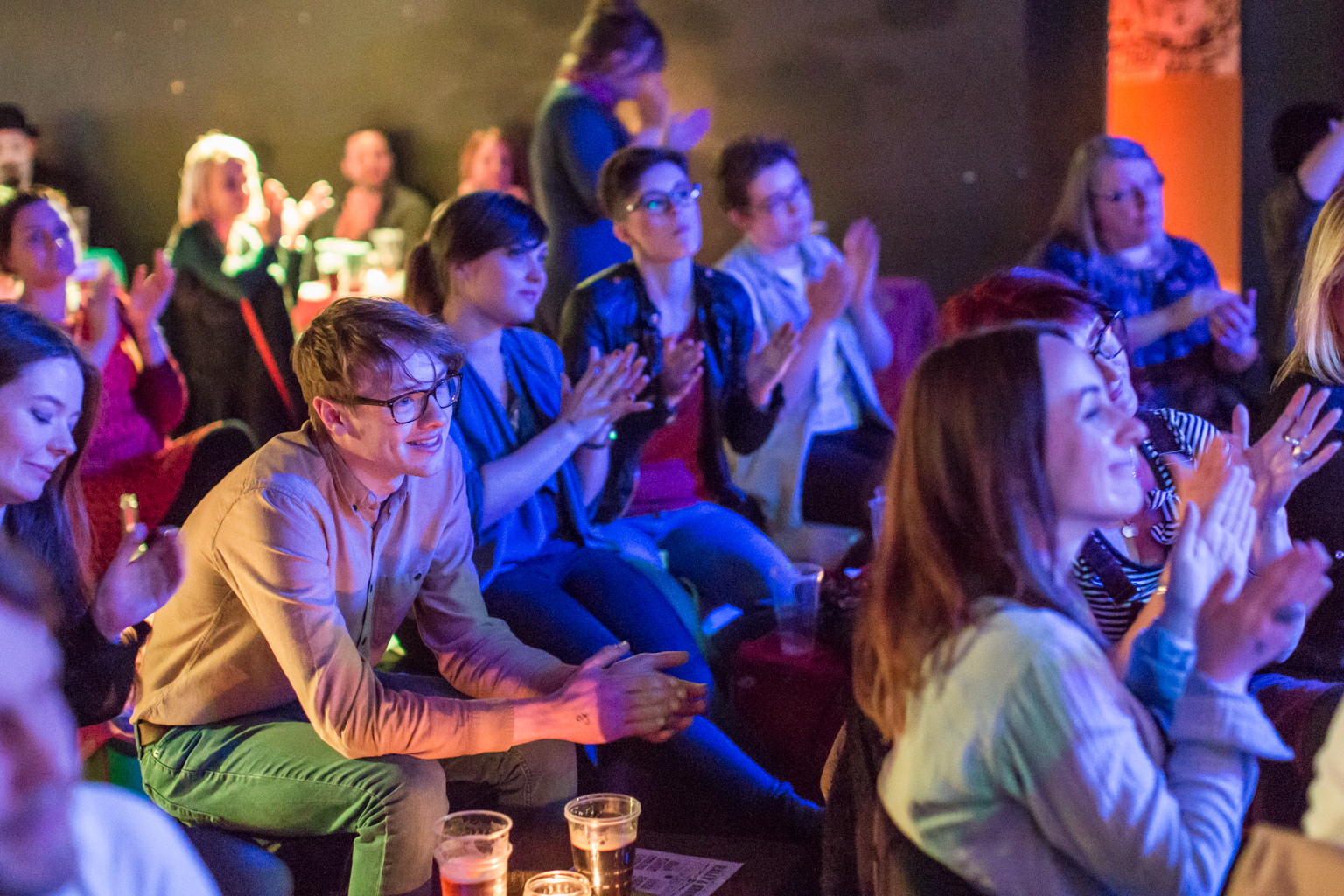 The linguistic star of the set (in this lowly writer’s eyes) was undoubtedly Luke Wright, a foppish and seriously talented spoken word artist, whose set brimmed with comic irony, originality, and anger. His final (hysterical) piece gave voice to the perverted frustrations of UKIP voters. The piece was brilliant, and the performance devastating. Musical acts Johnnie Common and Creative Martyrs were just as intriguing. Common’s strange and whimsical arrangements were as funny as they were accomplished. Creative Martyrs lent a strange, and phantasmagorical air to the proceedings, drifting between stage and crowd like figments of a dream. Kirstin Innes, author of Fishnet, gave a provocative and spirited reading. Her debut (and meticulously researched novel) tells the story of the sex trade in Scotland. Innes’ stage presence is as provocative as her subject matter, and she was a joy to hear. Rally & Broad also performed a poem each (both have new pamphlets out). Both writers are expert wordsmiths, and bang on the pulse of post-referendum Scotland.