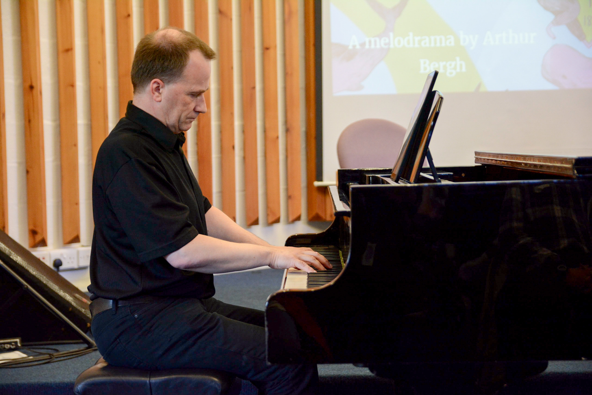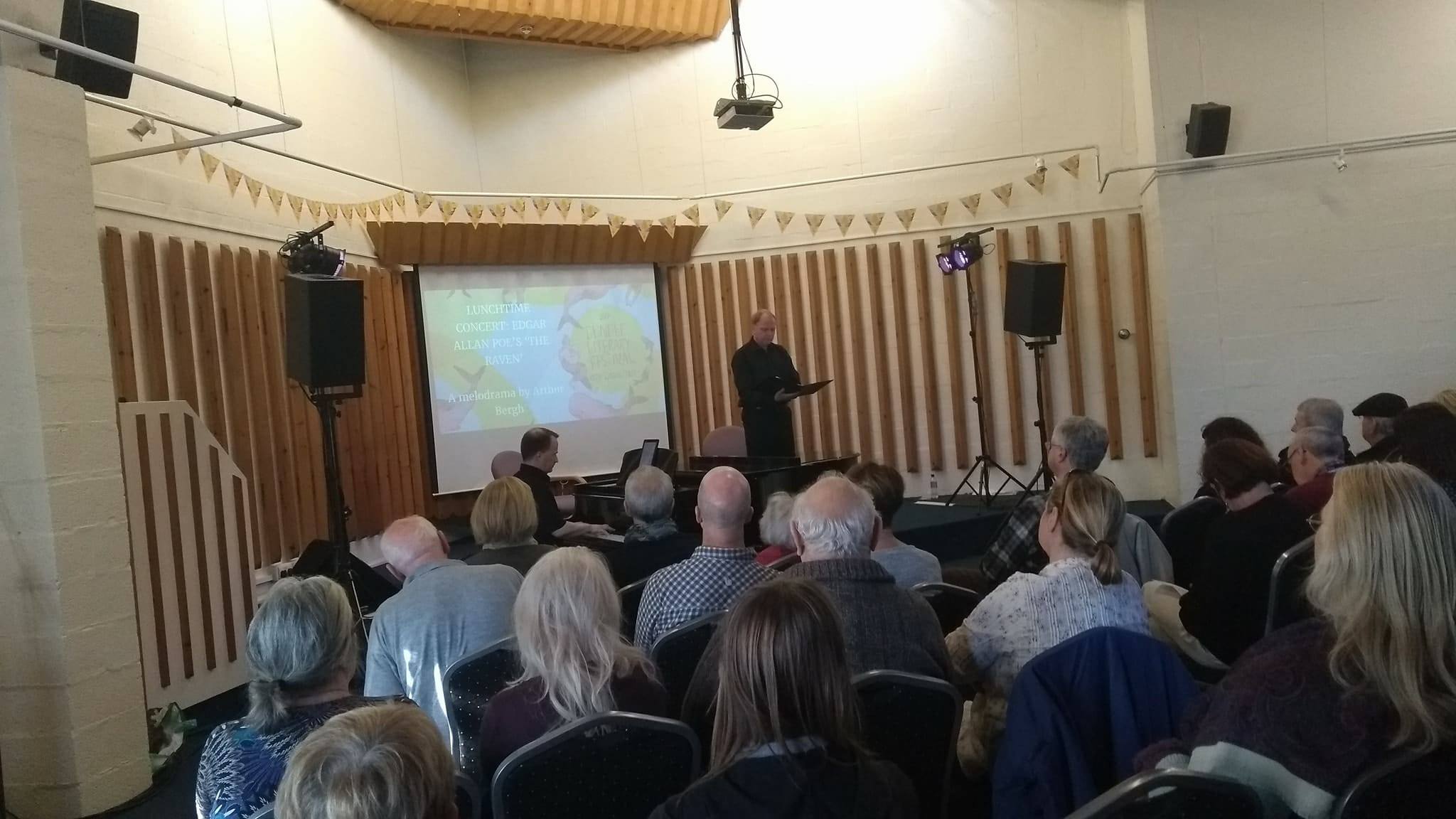 The Raven is one of my favorite poems, first published in January 1845, which by 1909 had attracted the attentions of Arthur Bergh, who created a popular-at-the-time but long-forgotten ‘melodrama,’ synchronising piano to Poe’s words. The performance was duly presented by Ken Murray (recital) & the University of Dundee’s Director of Music Graeme Stevenson on piano. Murray is a trained singer, & at times you could hear the lucid creak of him wanting to break out into melody – like a captive lion sticking its nose out of a cage – but managed to tame this natural beast & deliver an ambrosia-spurting, vowel-booming rendition of the Raven in his thick Scots accent. The music is charming & intelligent, opening at a pensive pace then keeping up with the more dazzling moments of Poe’s astonishing wordplay as the reciter descends into madness. As a performance, it was unquestionably excellent, but I couldn’t help feel that Arthur Bergh had tainted somewhat Poe’s original poetic chaunt. There is a certain hypnotic & thunderous rhythm to the poem’s mechanics which were all but wiped out by Bergh, as if he was painting over an original classic with art decor blocks of paint.