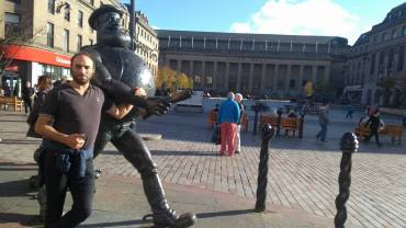 It was now time for a potter around Dundee, checking into the luxuriant Malmaison, our room looking out high over a busy Dundee street. Back in the city we wandered about for a bit, finding an atmosphere full of stress-free geniality. I also rather enjoyed getting my photo taken with a Desperate Dan statue. My grandmother used to get me the Dandy & the Beano every week, published & printed here in the city by D.C. Thompson. I remember the day as a 13 year-old when I said to my gran could I now get Roy of The Rovers & 2000AD instead, as I felt I’d grown out of the Beano. But still, for many years, I kept those paper relics of my youth in the bottom of my wardrobe at my grandmas, & would occasionally flick through them for nostalgic pleasure. Back in Dundee 2017, after Perth Road’s Braes for a beer & then The Tonic for nachos, me & the wife returned quite giddily to nearby Bonar Hall, the heartbeat of the Literary Festival on the University campus.