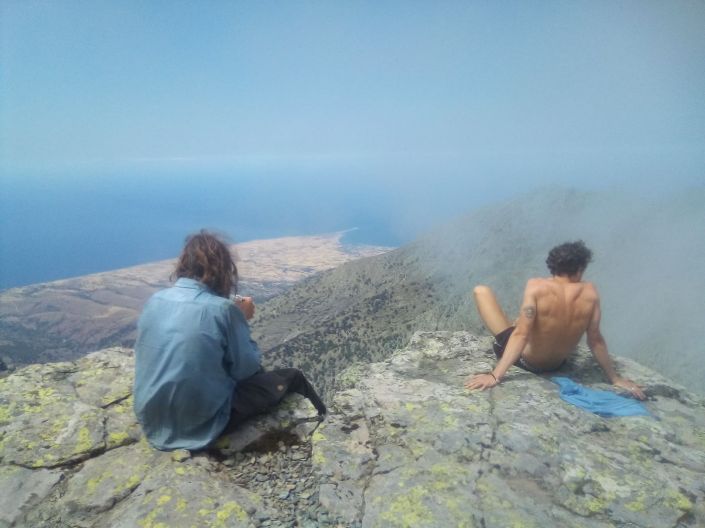 Samothraki is an island of oak trees, pebbly beaches & waterfalls; & in these twelve days I’ve managed to climb most of Mount Saos -the highest mountain in the Aegean – an eight hour mission, just halting shy of the 1.611 metres ‘Fengari’ (moon) summit, followed by some canyoning in the rocky gullies back to Therma. My favorite pasttime, tho, is the morning ritual of walking to Therma, having some coffees, then spending an hour in the hot sulphuric springs, from where I’d buy fresh bread & take the meandering back roads to the campsite. Very conducive for literary thought!