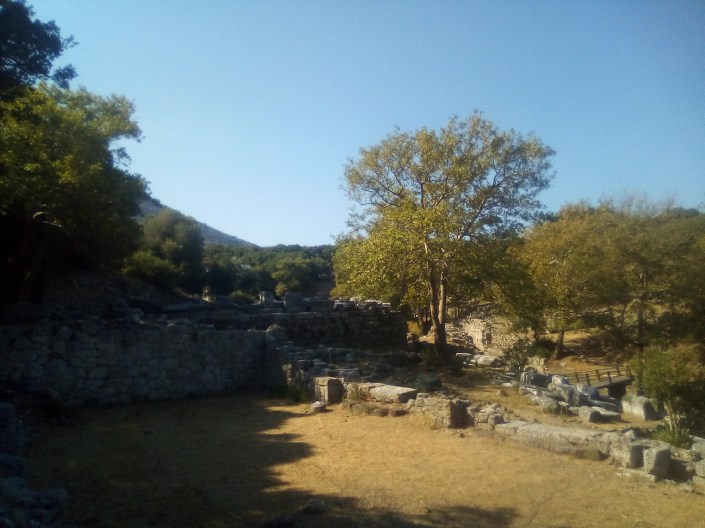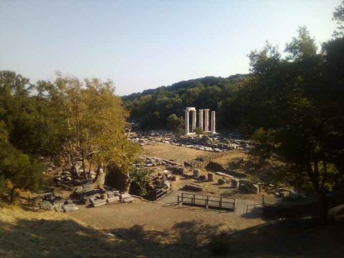 The Sanctuary of the Great Gods is to be found at Palaeopoli (“old city”), the ruins of which are situated on the north coast of Samothraki. Considerable remains still exist of the ancient walls, which were built in massive Cyclopean style. The museum was closed when I went along, but I wondered if they still had the bowls mentioned by Diodorus Siculus