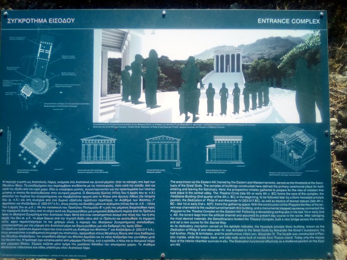 I visited the Sanctuary this morning, getting there at 8 to have the place to myself & get into the zone. They key element to the visit was discovering teh theatrical circle of the entry complex that connected to the old city – Paleopili – whose cyclopean walls stretch up mount Saos – extremely beautiful. From here the initiates would descend along the paved sacred way into the holy valley for the Mystery itself. It was on such an occasion that Alexander the Great’s father, Philip II, met his mother, Olympias. With the Mystery procession being divided into three seperate parts, we are looking for the general outline to three different aspects of the Samothrakian Mystery. These are actually findable, tho’ contained in scattered texts.