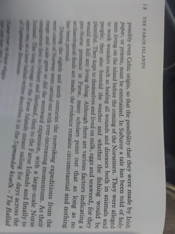 The fate of Cronus differs across texts, but with Orpheus he is incarcerated in the cave of Nyx, a cave of night or darkness, which perfectly reflects the extreme northerness of the Faroe Islands & their ‘eternal’ nights & days. In Plutarch’s moral essay, Obsolescence of Oracles (DeDefectu Oraculorum) one of the speakers is a certain Demetrius, who in an aside remarks upon the eternalimprisonment of Cronus. He relates that Cronus was confined in a cave on an island close to Britain, guarded as he slept by the ancient Briareüs and various other daimones (demi-gods). The Faroe Islands are indeed close to Britain, & even record a local folk lore about Holy Man inhabitaing Sudouroy long before the Norse arrived.