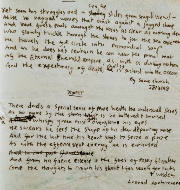 As Shelley is unslumber’d from his sunken sleep