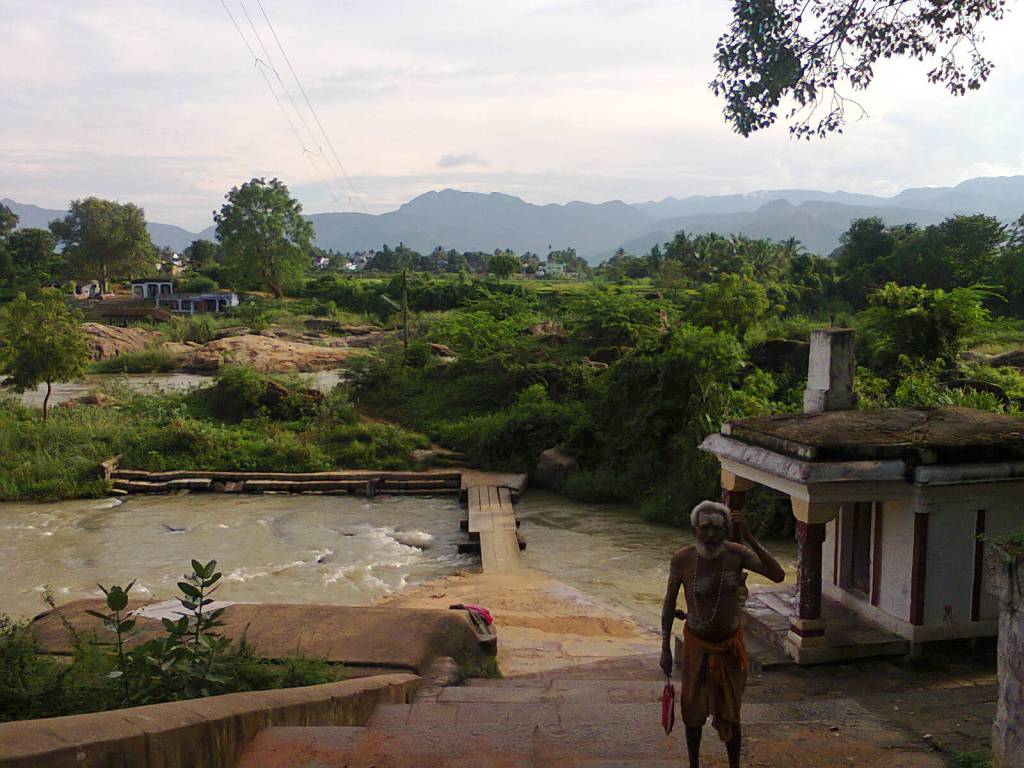 Agastya was suppos’d to have lived upon the Potiyil hill, which I witness’d towering over the locality like the Tamil Mount Doom, a cone-shaped edifice erupting out of its less aesthetic shadowy cousins of this portion of the Western Ghats. On arriving in Ambassamudram, however, I discovered that to visit the mountain I had to go in from the Kerala side, gaining permission from Trivandrum forestry commission en route. I’m not going back for Kerala, fuck that, so my new plan was to get as close as to the Potiyil as I could, which involved travelling with a couple of local guides who helped us cruise through the security checks & avoid the Ring-Wraiths (Forestry Commissioners). I had a splendid old time, including a dip in a powerful waterfall at the Agastya Falls. Another highlight was a boat-trip across a man-mad dam, whose surrounding scenery was more beautiful than anything I’ve seen in Britain – it was so epic! But this was as close as I was gonna get to the Potiyil Hill, for as I’ve already, said the trekking paths up it actually started on the other side of the Ghats, back in Kerala. I didn’t mind, however, for the day had been a majestic one, & I slept the soundest of sleeps back in Ambassamudram.