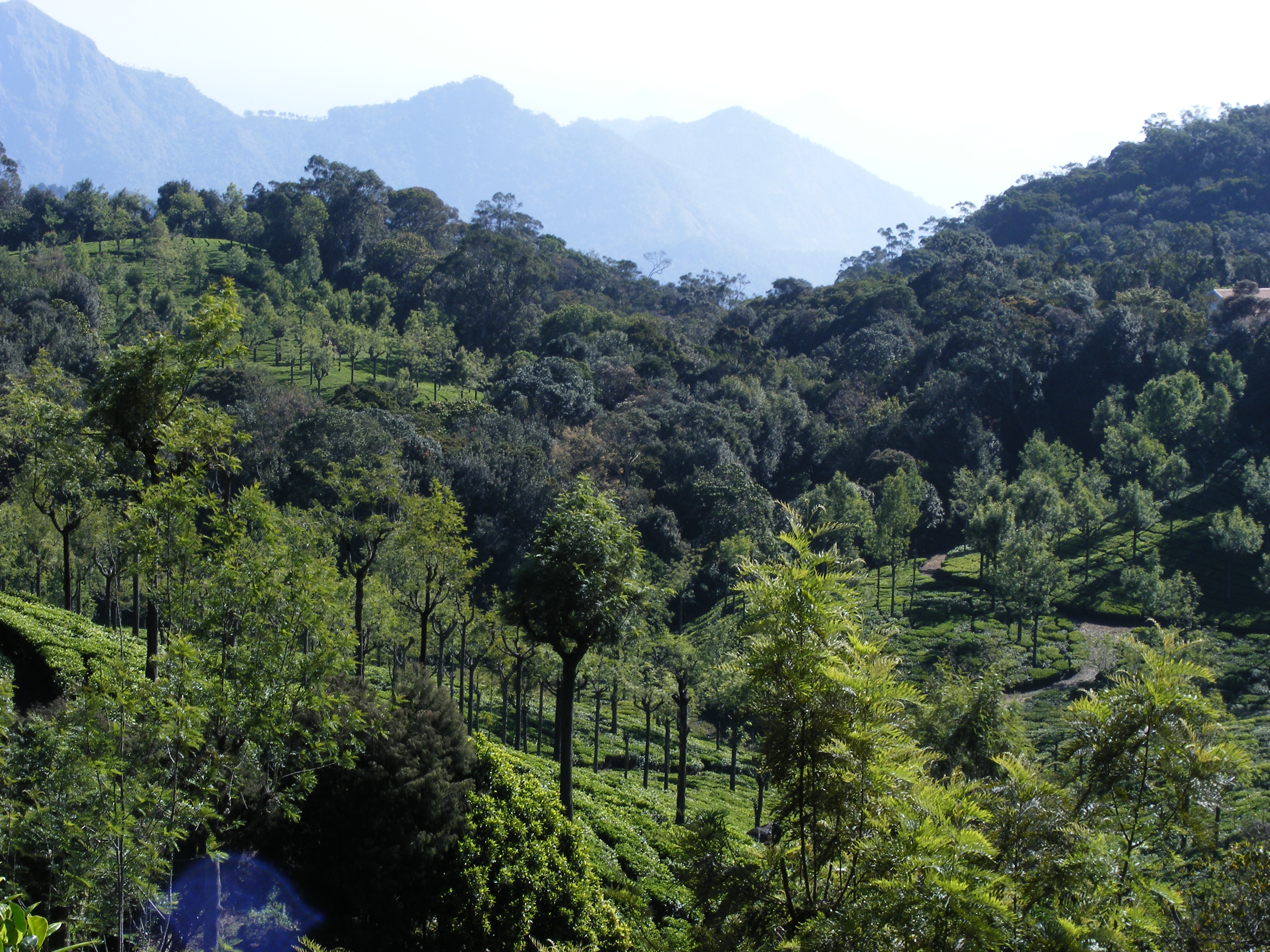 Today I was completely immers’d in flower-peppered walks, from lofty dams to fertile carroty valleys, as I work’d on the hardcopy Kural. The day began by hopping on an early bus & bantering away with loads of friendly school kids. The bus dropped me off 2k over Coonor & I then set off on a hike to the fabl’d Lambs Rock & Dolphins Nose, for apparently they had spectacular views. Unfortunately a thick cloud had fallen & I could see fuck all apart from the waterfall-dotted forest all about me. Then, when the road broke out of the trees, I found myself crossing the slopes of a massive tea plantation. I’d never seen tea growing before, & there wasn’t a drawstring bag to be seen. The tea bush is 2 foot tall, with green leaves 3-4 inch long & 1-2 inch wide. Somehow 3,500 years ago some of them fell into Chinaman’s cup of boiling water & hey presto, the magic brew. I also had a similar epiphany involving this magic herb. I needed a dump, so did one among some tea bushes. Then wiping with aforementioned leaves, I found them the smoothest I had ever used, better even than andrex extra-soft!