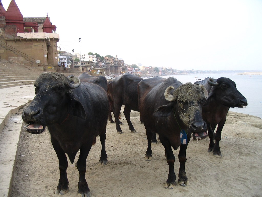 I finally arriv’d in Varanasi early this morning, & boy was I impress’d. I took my first glimpse of the Ganges as the train roll’d over it on its way to the station… a breathtakingly romantic river, cushion’d in a hazy mist & flank’d by some of the most gorgeous phantasie buildings I have ever seen. After being rickshaw-whisk’d to a hotel I took a stroll thro’ the city’s narrow streets – very Italian.