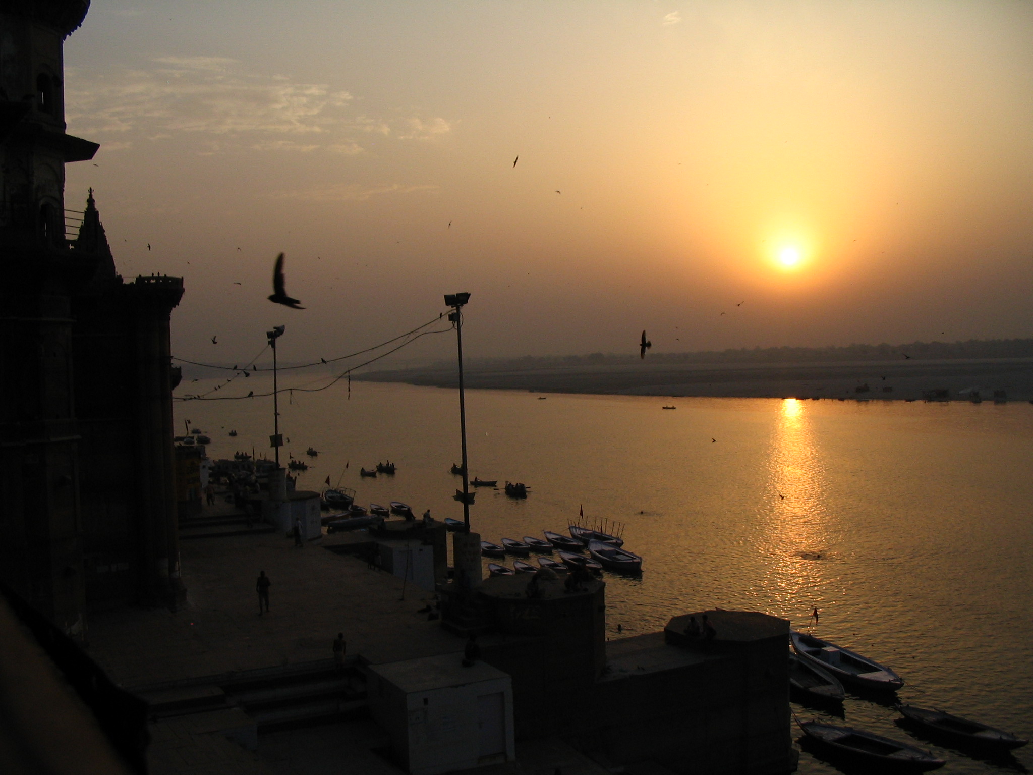 I finally arriv’d in Varanasi early this morning, & boy was I impress’d. I took my first glimpse of the Ganges as the train roll’d over it on its way to the station… a breathtakingly romantic river, cushion’d in a hazy mist & flank’d by some of the most gorgeous phantasie buildings I have ever seen. After being rickshaw-whisk’d to a hotel I took a stroll thro’ the city’s narrow streets – very Italian.