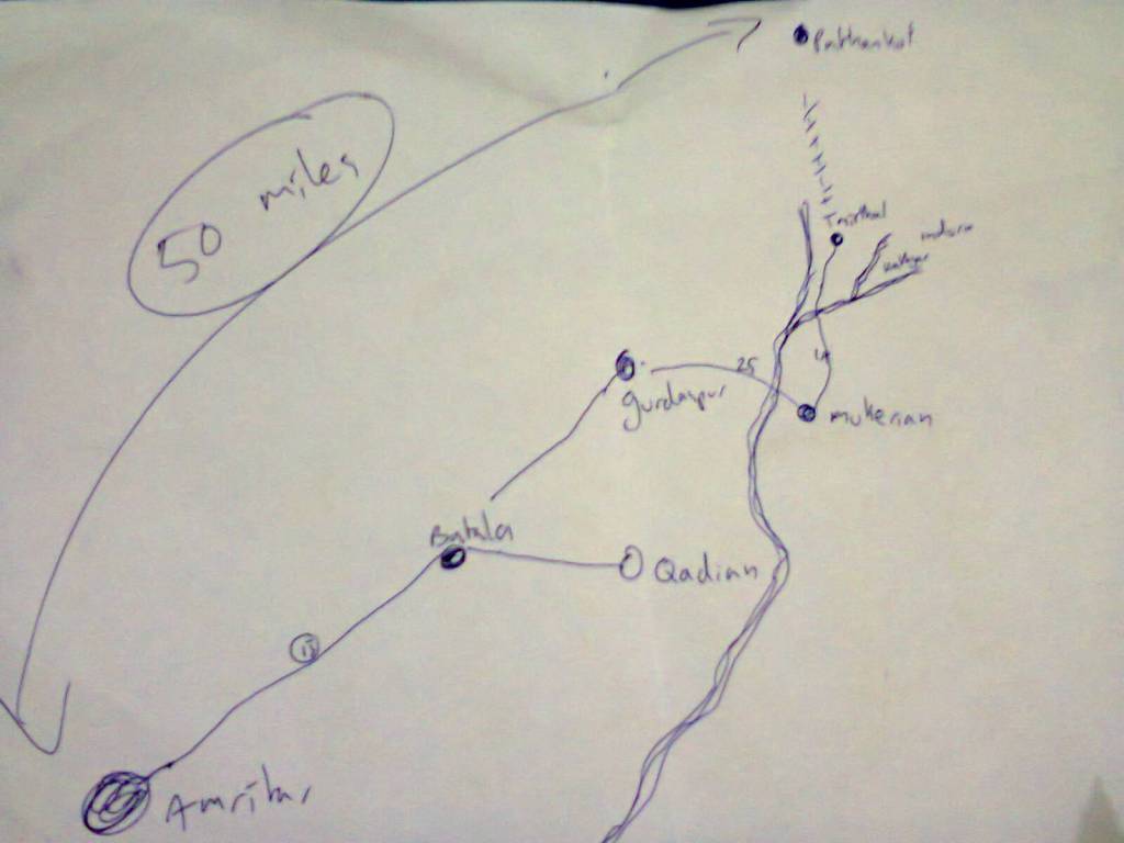 Setting off north towards Srinagar, I had noticed that our route was to take us fairly close to Qadian, the birthplace of Hazrat Mirza Ghulam Ahmad (1835 – 1908) himself, & felt compelled to pay his ghost a visit. A rapid 20-mile bus journey took us north to busy little Batala, half of which town seemed to be only half-built, from where a further bus brought us to Qadian. A town of 40,000 souls, there is a distinct relaxed attitude & atmosphere to the place, perhaps due to the narrow Italian-style streets the constitute the core of the town. Just on the fringes of these lies the spiritual home of the Amhiddaya movement, of which the author of Jesus in India is the spiritual head, the self-proclaimed ‘Promised Messiah’ who claimed that certain prophecies predicting the appearance of a divine teacher were fulfilled in his person.