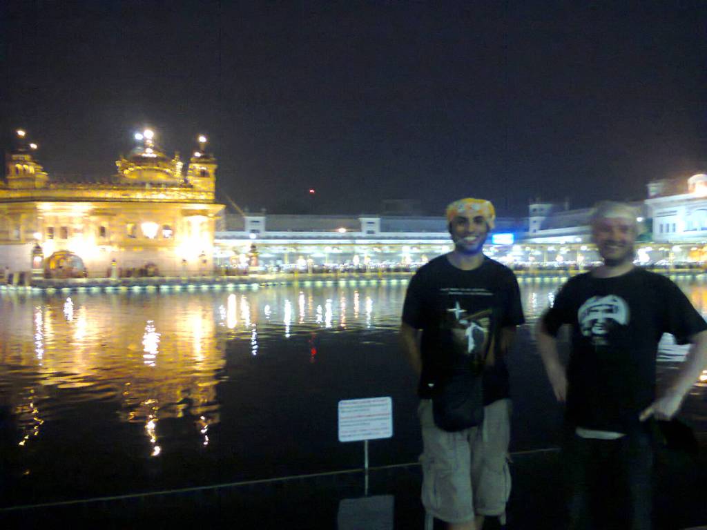 Our destination was Amritsar, & I urge anyone who finds themselves in this part of Asia to visit the city on account of the majestic Golden Temple of the Sikhs. This is a gleaming holy house set in a vast ‘lotus pool’ which reflects the temple in its silky waters, creating a wonderful aesthetic effect, especially at night. Surrounding the square lotus pool, on all sides rise white marble buildings, & behind them yet more buildings, all contributing to the capital complex of Sikhism. In one section, up to 100,000 daily devotees are fed for free, squatting on rugs in great chambers while rice, curry, desert, chutney & water are placed in their metal pans. The sound of these, as they reach the washing area at the end of each meal, reminded me of blasting rain as it hit an aluminium roof.