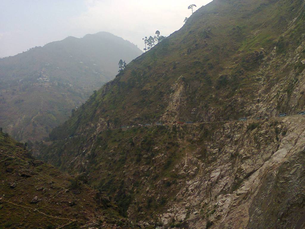 This state of affairs has led the Indian government to build a great double-carriageway between Srinagar & Jammu, which was under construction as I write. Thus this portion of the massif is practically one gigantic building site, the residue of grand ambition & a feat of engineering that should marvel the world – when it is finish’d of course. Until then, I, & every body else on the planet making the journey by road, must struggle & shuffle forward in a stop-start fashion. We also past numerous road-safety signs such as ‘After Whiskey, Driving Risky,’ & braving treacherous corners where one false move sees a vehicle & its occupants tumbling hundreds of meters to their inevitable dooms. Personally, my vertigo & I were petrified, but we both survived the journey to the Kashmir border & its ‘Titanic Viewpoint.’