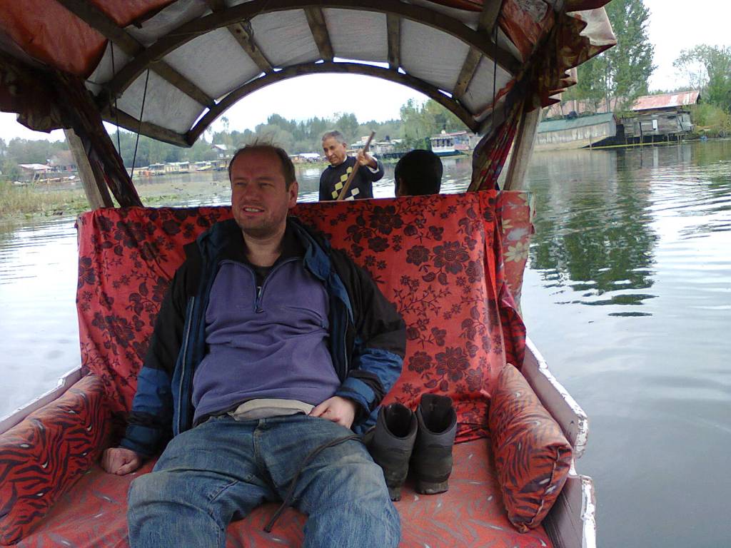 Today was a great day all round. It began by transferring digs to a hotel boat on the tranquil oasis of the splendid Dal Lake. Victor had found us a nice, non-poison, family-run houseboat, & what a joy it was to be there. A village on water, one must travel to & from the ‘mainland’ on the oar-drawn shakaras, a watery oasis of calm away from the sheer incessancy of India.
