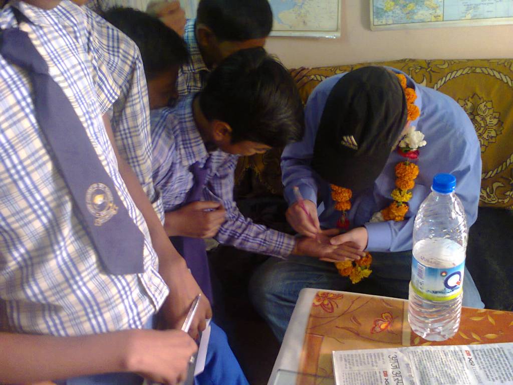 The Snehelaya set-up is very colonial, with the medical volunteers having an upper floor to themselves & waited on hand & foot. This afternoon, we went out with a roving ambulance, pulling into villages to give out health advice & medicine. While they were doing this I wandered into a local school & gave an impromptu English lesson to kids – great fun, especially when I sent out a kid for talking to much – just like me when I was his age. On the way back karma struck again, for some guy who had just had a bike accident. Tho’ in pain, his face lit up when our ambulance rounded the bend he had just skidded off.