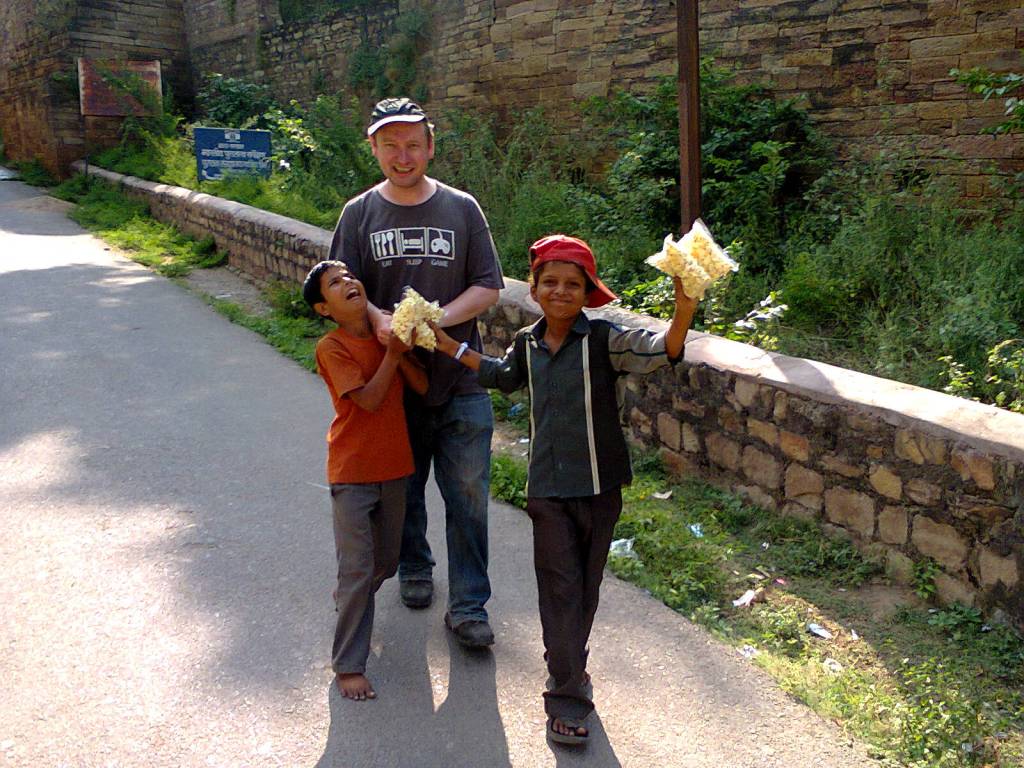 It is set in a compound in the middle of ‘bandit country’, protected by armed guards. Inside it is an oasis of peace for thirty kids with varying degrees of disability. They were all delighted to see & play with me. I even found a guitar there & we played them a gig – but as they only spoke Hindi it was difficult for them to appreciate my lyrical genius. The maddest moment was seeing this blind kid with a Burnley top on – honestly. Apparently it was donated after a recent visit by the RAF, but either way it was cool to see.