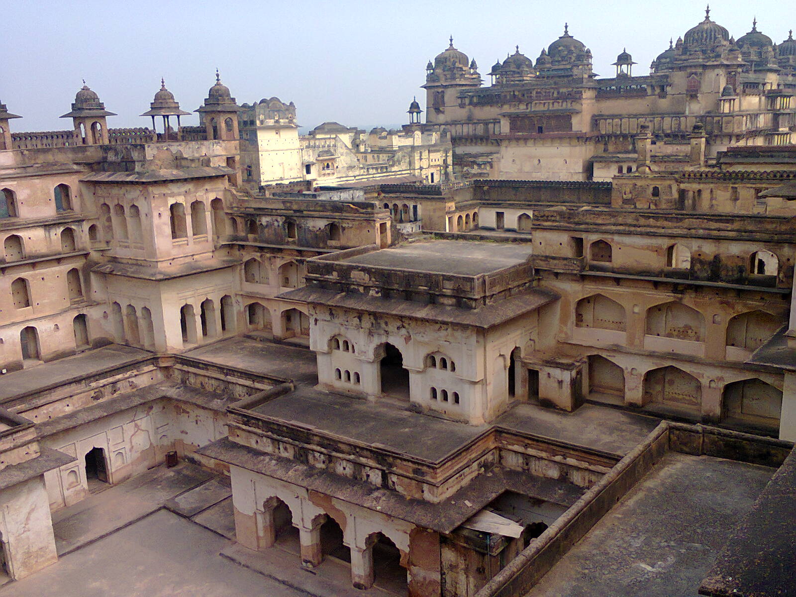 Today, we finally left Gwalior, with Bhagat very kindly picking up the hotel bill. We are zooming south on the Shatab-di Express, the fastest train in India, as wide as a plane & pretty luxurious compared to the rusty charabangs I am used to travelling on. It took about an hour to reach Jhansi, an otherwise nondescript typical city. Sharing a rickshaw with a yank, we pull’d into the village of Orrcha, which spreads about the wonderful 500 year old palace & fort of the old kings of Orrcha. It is a quiet little temple town, whose elegant ruins are quite simply magnificent, haunted by vultures & flanked by two gorgeous swimmable rivers. Perfect poet’s country, & I penn’d the following sonnet based on a local legend here;