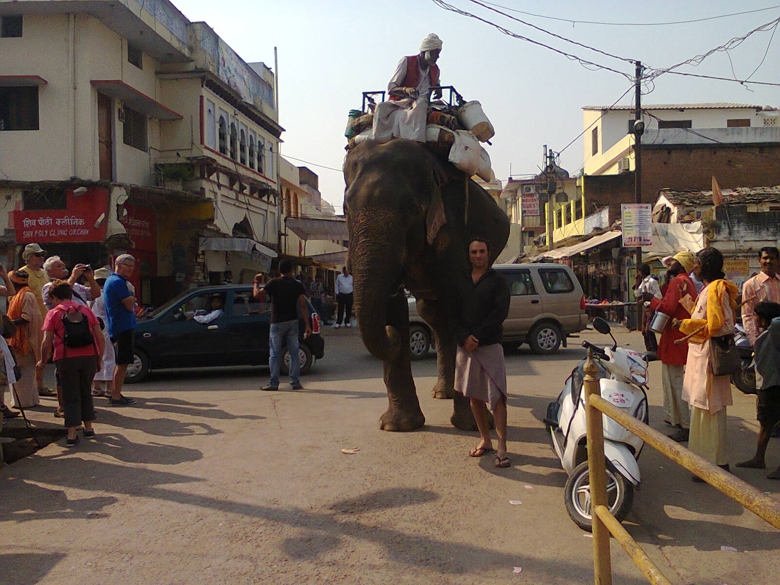 We left the orphanage this morning in a flurry of fond farewells. It was quite poignant saying goodbye to the kids – we don’t realise how lucky we are guys – both to live in the West & to be able-bodied. Returning to Gwalior for one more night, there was time for some conventional sight-seeing, which saw us ascend the great hill at the heart of Gwalior – the Gibraltar of India – where the Man Singh Palace was a wonder to behold. Most disturbing, actually, was the sight of a thousand or so bats ‘sleeping’ upside down in one of the empty rooms – an unnerving experience but highly interesting. Back on the plain there was another, built for the Maharaja of Gwalior, whose opulence was quite ridiculous to see in a country of such extreme poverty as India.