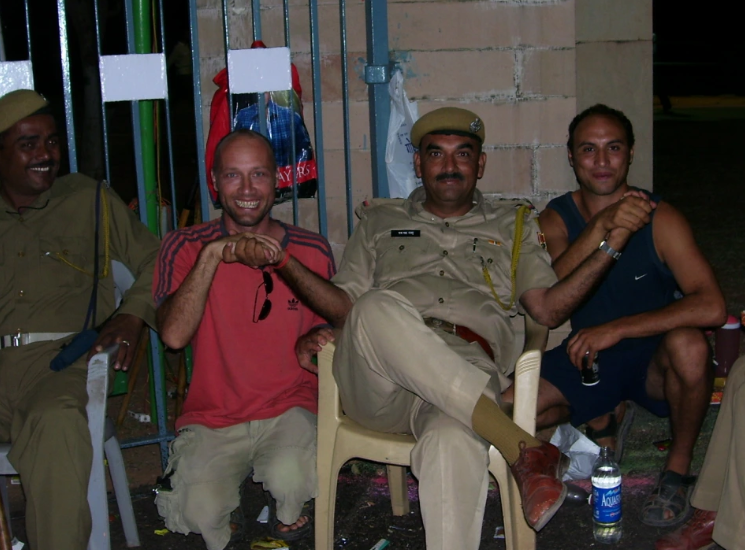 It was time to meet back up again with my India pals, Steve & Kate, who are now deeply entrench’d in love. Thanks to the wonders of e-mail, we had arranged to all meet up here for the night, & I’d managed to get some great seats for the England-Australia cricket match for cheap off a local. We had a front-row couch, free drinks & a veritable banquet at ‘half-time.’ The funniest thing was getting in, however. The rickshaw driver dropped us off right at the gate, where twenty or so cops peered at me. They would have seen me hide the weed, so I just risk’d it. On reaching the gate, they asked me to turn out my left pocket – so I did & handed them my bottle of whiskey, apologising profusely. Then I just started walking in, but as I did so they said can we see what’s in your other pocket.