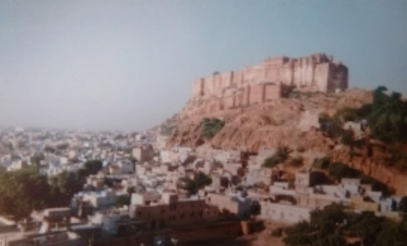 Reach’d Jodhpur, where this famous Rajasthani fortresses towers over everything & is seen for miles. The city itself sprawls around the majestic walls of the Mehwangar Fort, with half the rooftops painted sky-blue, giving the city a watery feel. Spent my time settling into a rickshaw-fuell’d, cannabis-driven writing rhythm, staying in a classy hotel, with a rooftop terrace & food on call. Outside, the city swirl’d about me, a constant drone of beeping cars, bikes, camel-wagons, buses & rickshaws all competing for whatever space they could find on the roads. Occasionally the smells of various street-vendor frying pans would waft up to my room & drag me outside for the munchies (I got some good weed in Pushkar yesterday), where I was once again mingling with 100% Indians. It’s all a far cry from the traditional tourist routes of Goa & Kerala, & I sometimes feel like I’ve just walked thro’ Blackburn town centre with a Burnley shirt on.