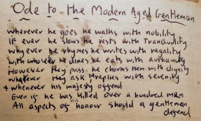 I shyall always carry one incident with me. Not long after being locked up I desired the return of my notebooks & pen. After pouring my soul into the composition of the Death of Shelley, I wanted the manuscript close to me. The thought of it being lost by the Swiss autharities rankled me, & besides, there were a few corrections that needed making. So I began to press the contact button in order to get its return, but my request was refused. This wound me up, so I proceeded to tap out a percussive rythym on the buzzer, which I knew would infuriate the gaurds. A few moments later I had been taken to a solitary cell of confinement – & still no notebook! So I proceeded to go through the first album by the stone roses at the top of my voice, acapella style with bongo accompaniament, & got as far as She Bangs the Drums before five massively-forearmed gaurds burst in with a flurry of punches, calming me down somewhat.This I completely ignored & insisted on the return of my notebook. Finally my protestations were heard & I was given the poem & immediately fell as quiet as a mouse.