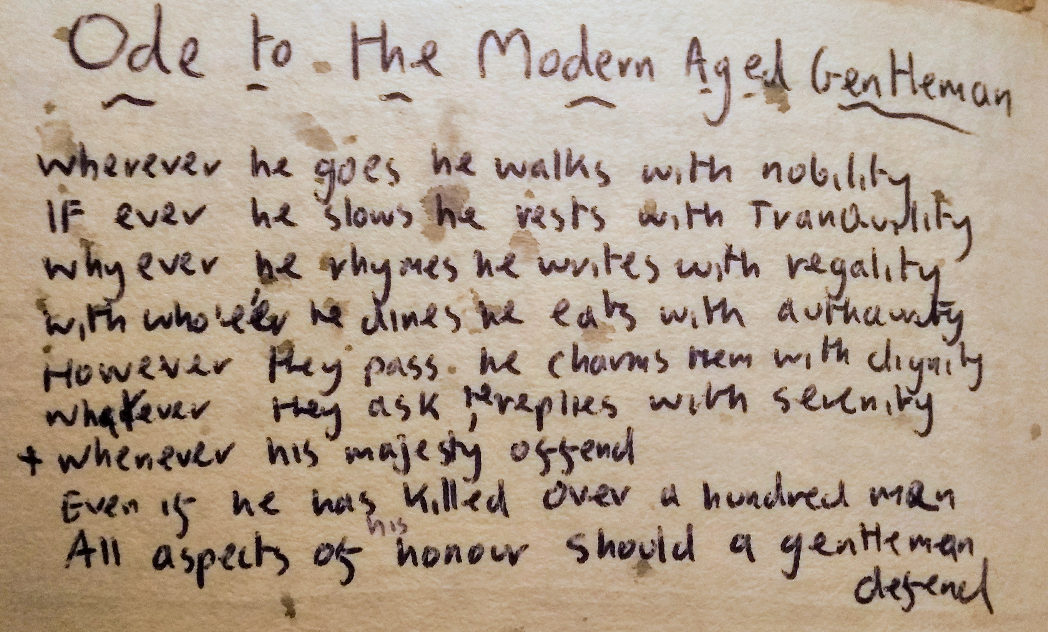 Jarmain was buried in the 6th Airborne Cemetery at Ranville. He has been remembered since as a leader, a hero & also a poet of the purest calibre. He left the world a desperately slender collection, among which stand poems that should rank alongside those of Owen & Sassoon among those memorials from the front-line that present an unmisted eyeglass into what it was like to actually fight in those terrible two World Wars of the early 20th Century. For the Great War Poets, especially after 1917, war poetry was all about recording the awful bloodshed & senseless loss of life; when death flew over a battlefield in a thousand & one ways to ravage & maim- the sonic boom of a shrapnel shell was one, turning insides to jelly just before they are pierced by hundred slices of jagged iron hurtling through them at 7000 miles an hour. Asphyxiation is another, gripped by the throat by the fierce hands of an enemy soldier whose bullets had all been spent, & whose bayonet had snapped. By Jarmain’s poetry, the blood and guts had been replaced by a pathos even more effective at touching the reader’s spirit.